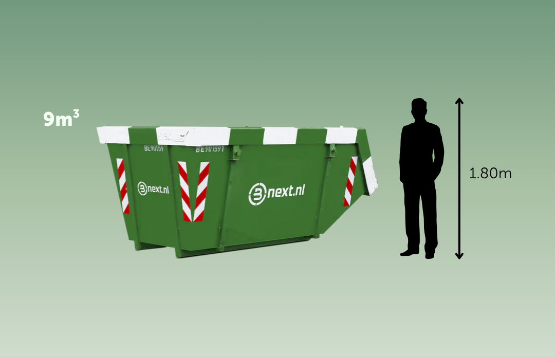 De 9m³ container is de grootste container van Bnext.nl die je via de webshop kunt huren.. Hier kun je enorm veel afval in kwijt! Ideaal tijdens een grote verbouwing, sloopwerk en andere klusprojecten.