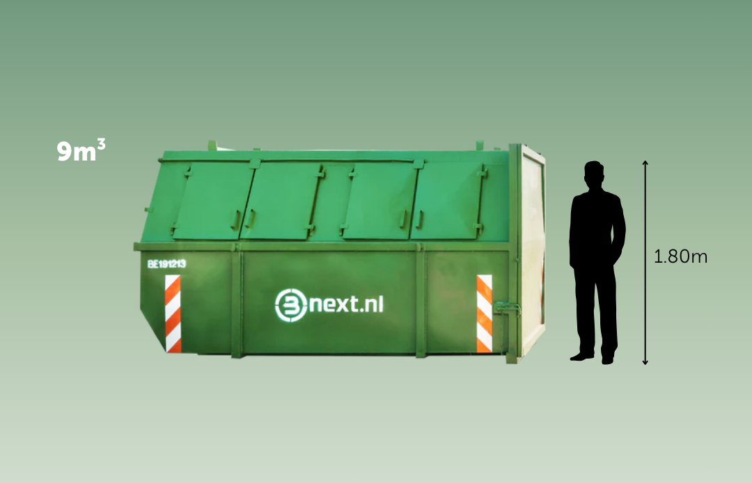 De gesloten 9m³ container van Bnext.nl is de grootste container die je kunt huren. Dit formaat is ideaal tijdens grote sloopwerkzaamheden of een verbouwing. Je kunt er namelijk héél veel in kwijt en je maakt de bak zelf op slot. Een gesloten container van 9m³ heeft een paar extra voordelen!